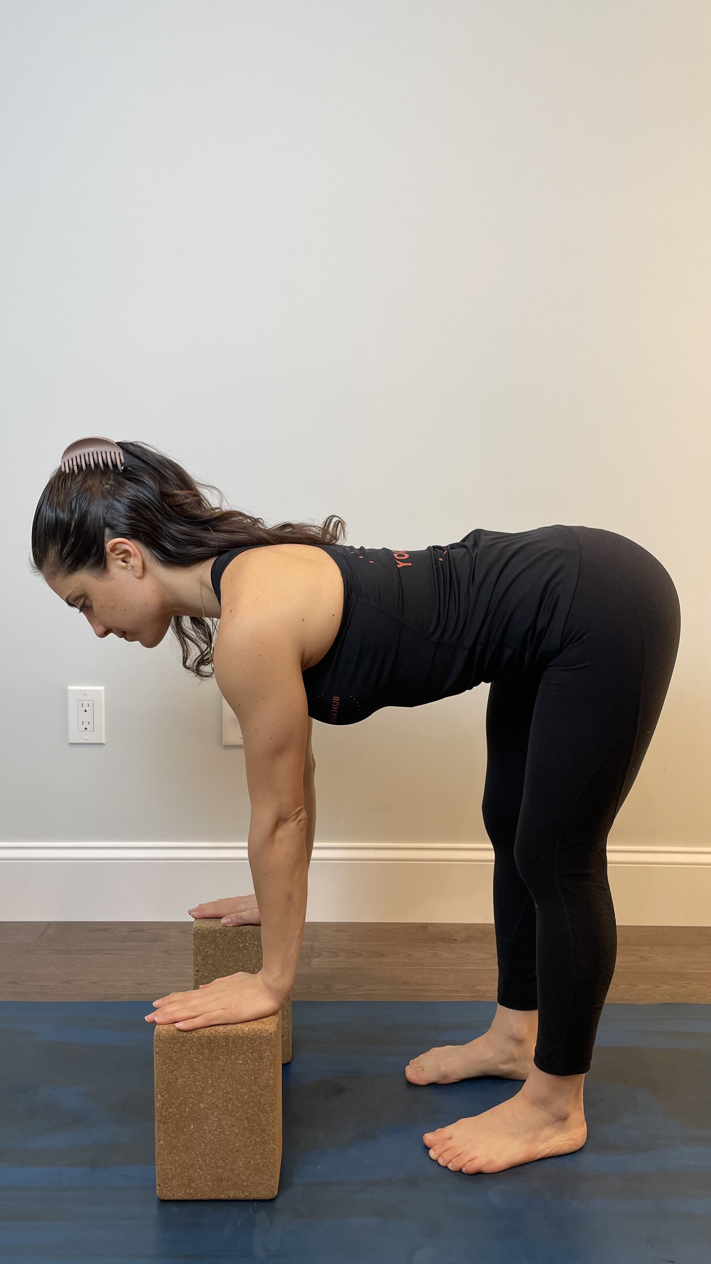 Apart from a yoga mat, I find that the most useful yoga props to have around are blocks. Yoga blocks act as “ground lifters,” preventing your spine from rounding in order to reach the floor.