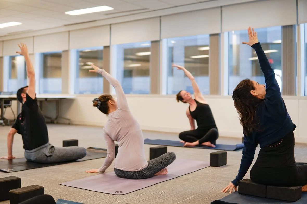 Set up in the boardroom, cafeteria, or mobile conference space for a chair or mat practice that saves your employees time and helps them the beat rush-hour commute.