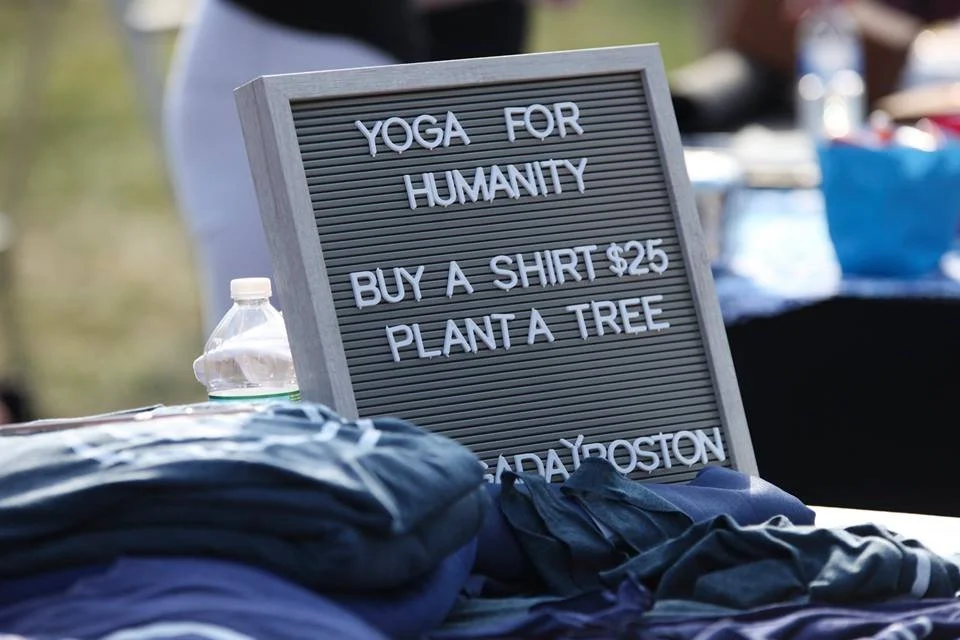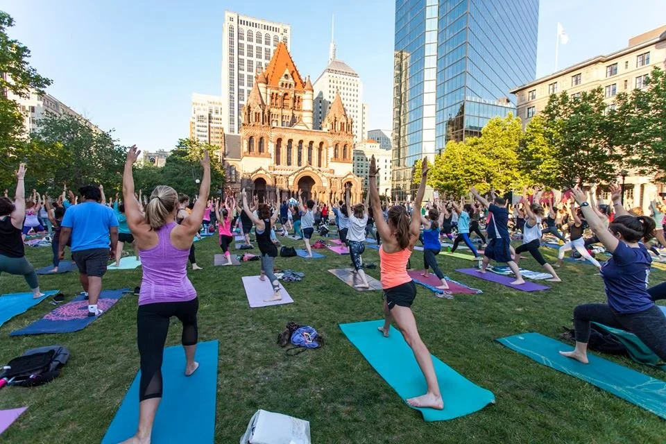 Yoga for Humanity joined forces with YogaHub to bring a FREE, public, all-levels vinyasa yoga class along with a health and wellness marketplace in Copley Square.